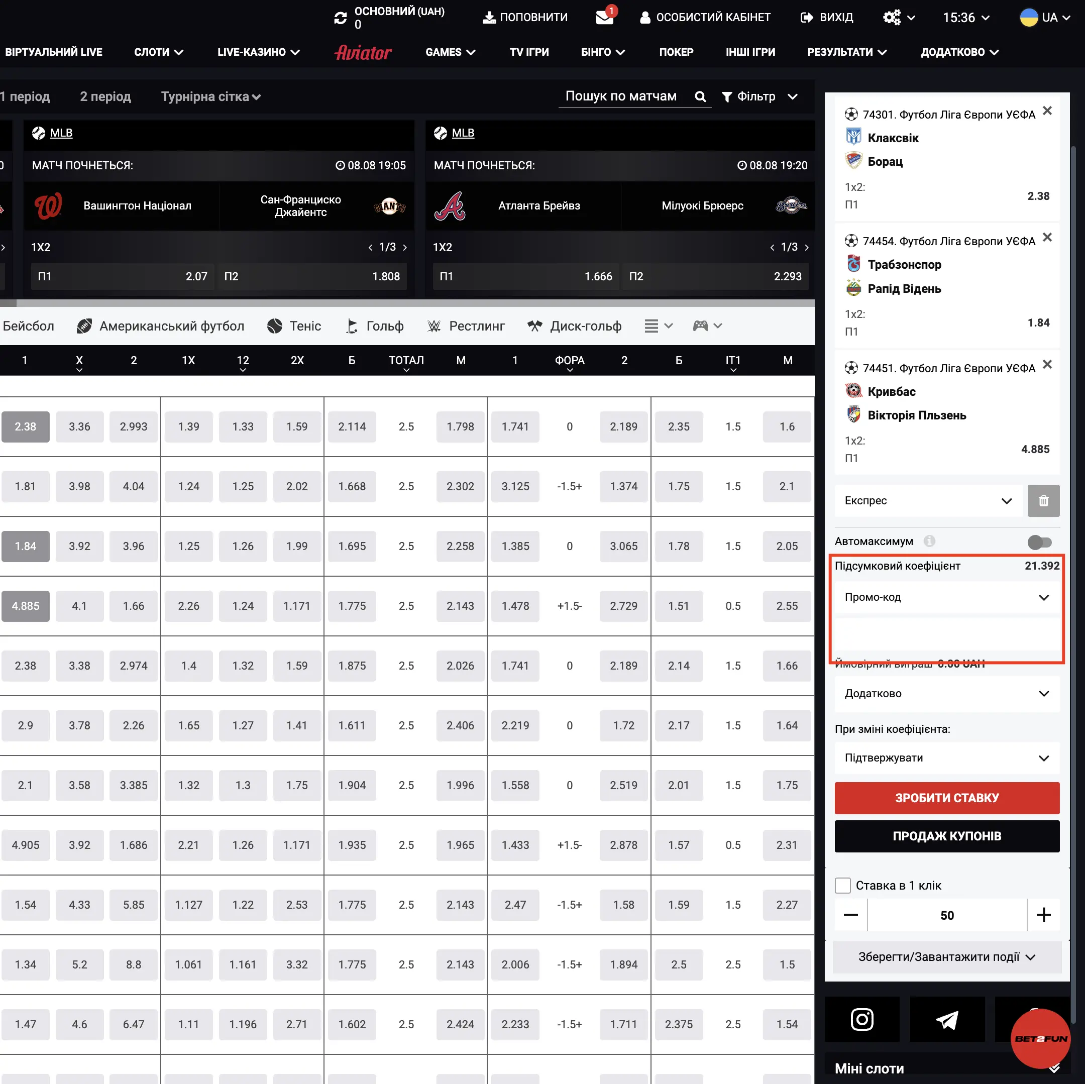 Сформуйте купон зі ставок що відповідають умовам промокоду (фрібету)